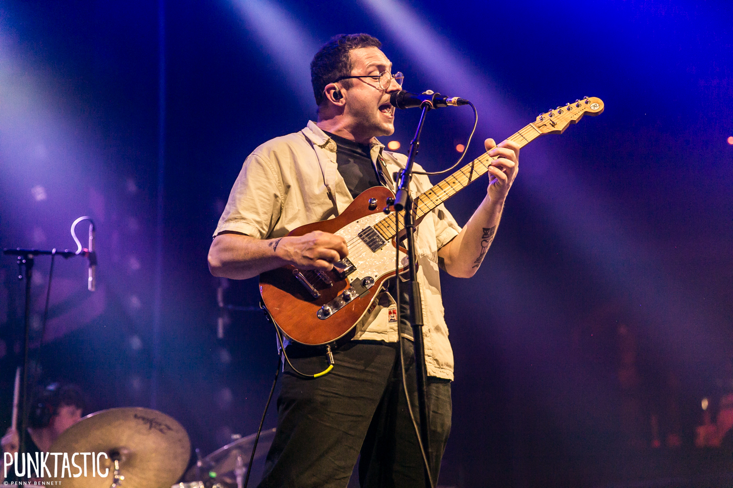 And now, Hot Mulligan. ‘Moving to Bed Bug Island’ opens with deceptive calm, the kind of measured intro that lulls you into thinking you might get a minute to breathe before the whole thing detonates. You don’t. ‘And a Big Load’ follows and the Roundhouse barely knows what to do with itself, and from there the room is in freefall in the best possible way. Tades Sanville occupies a very specific Venn diagram overlap between genuinely funny and genuinely devastating, working the crowd between songs with the ease of someone who has been doing this in rooms this size long enough to know exactly when to land a punchline and when to let a song do the heavy lifting. The banter never outstays its welcome because the songs never let it.