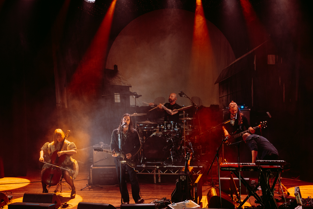 They begin the musical portion of the evening with ‘Riders’, weaving delicately into ‘Until Morale Improves’ and ‘Flamenco’s Fucking Easy’. The five-piece work their way through a treasure-trove of hits from their 25 year back catalogue; a couple from ‘The Other Shore’ here, a few from ‘Good Morning, Magpie’ there. A backdrop of projected images brings the stage to life even more, showcasing a myriad of footage from decaying wildlife to snippets of a film reminiscent of ‘A Trip To The Moon’, to a montage of images of the band through the years; a mix of grainy small club shows to polished shots of large venue shots showcasing their progression through the years, the perfect backdrop to the beautifully poignant sounds of ‘Lose You’.