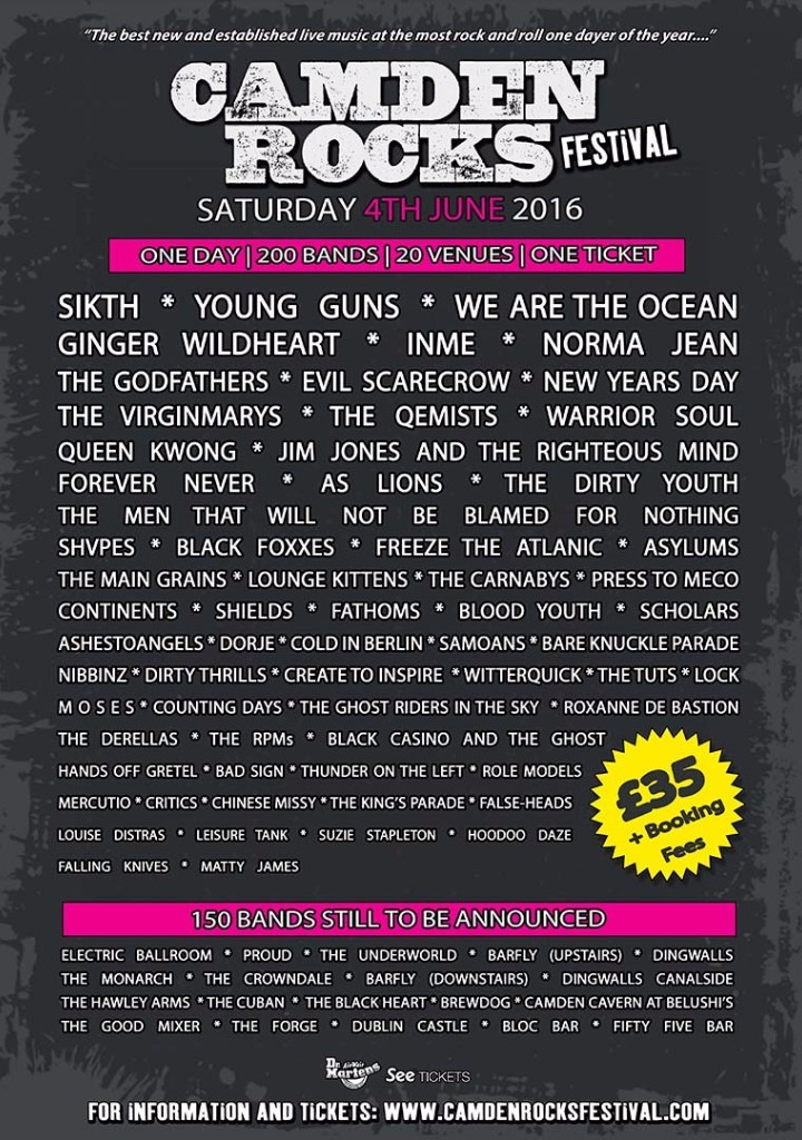 The festival will take place on Saturday 4th June, with tickets priced at £35. For more information visit: www.camdenrocksfestival.com