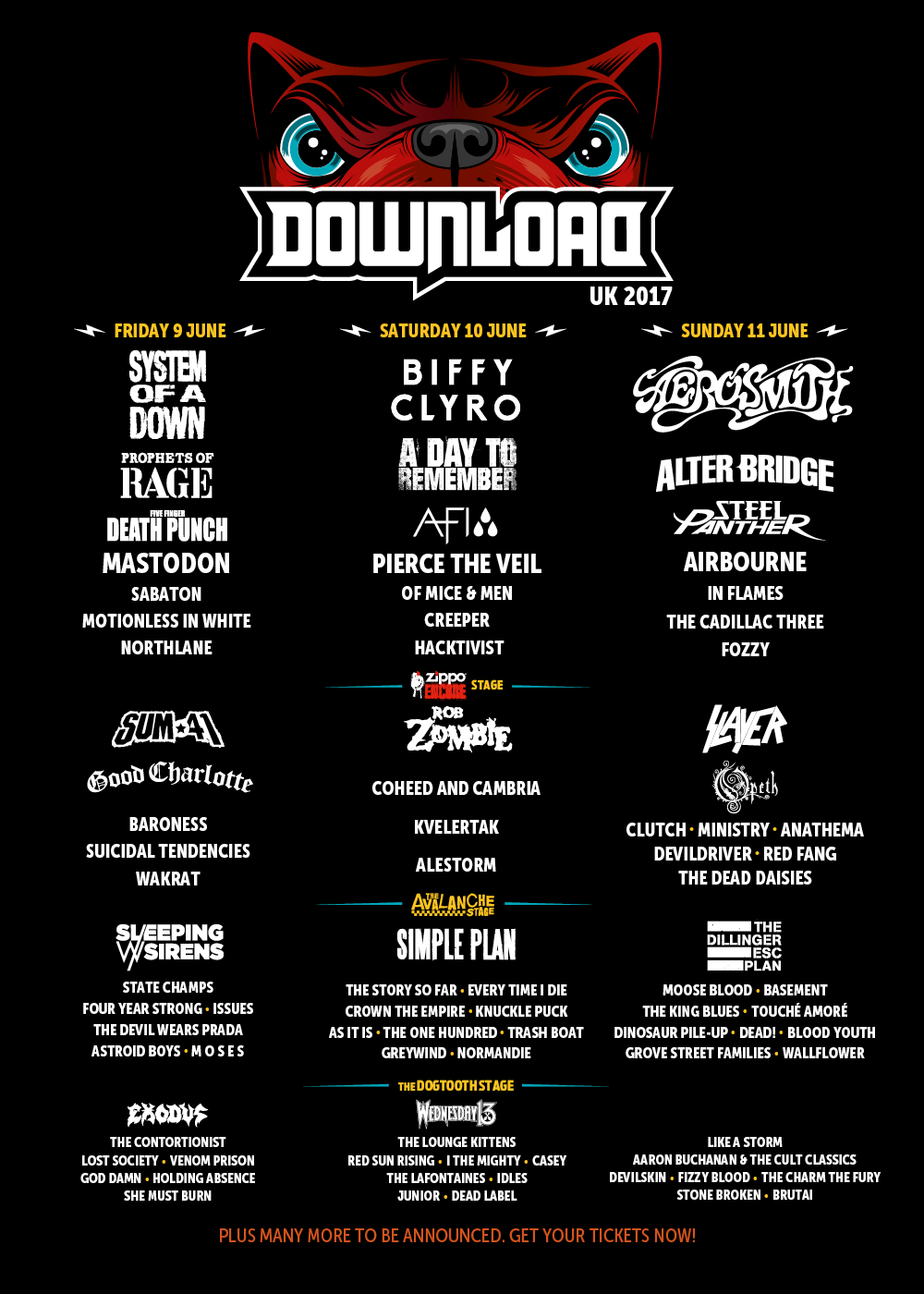 The previously announced bands that will be performing across the weekend include Mastodon, Sum 41, Pierce The Veil, Alter Bridge, Coheed & Cambria, Good Charlotte, Ministry, Four Year Strong, Basement, Prophets Of Rage, Slayer, Rob Zombie, AFI, Simple Plan, Of Mice and Men, Sleeping With Sirens, Motionless In White, Every Time I Die, The Story So Far and more.