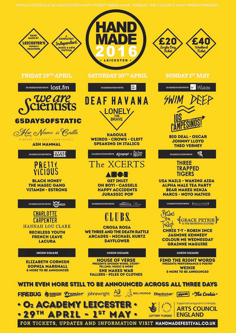 Handmade Festival have made the final additions to their 2016 line-up, including Get Inuit and Kagoule. The festival will run from the 29th April until the 1st May, topped by We Are Scientists, Deaf Havana and Swim Deep.