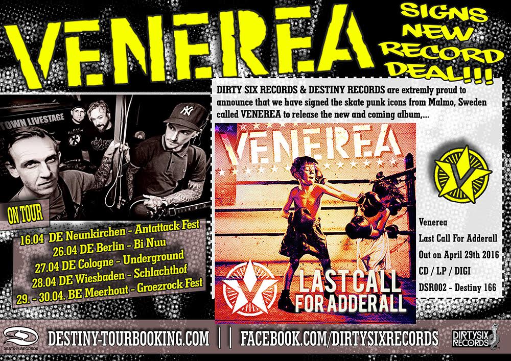 Swedish Skate Punk mainstays Venerea are back with a new album, their first in 6 years. ‘Last Call For Adderal’ will be out on Dirty Six Records on April 29th, which will coincide with their performance at Groezrock.